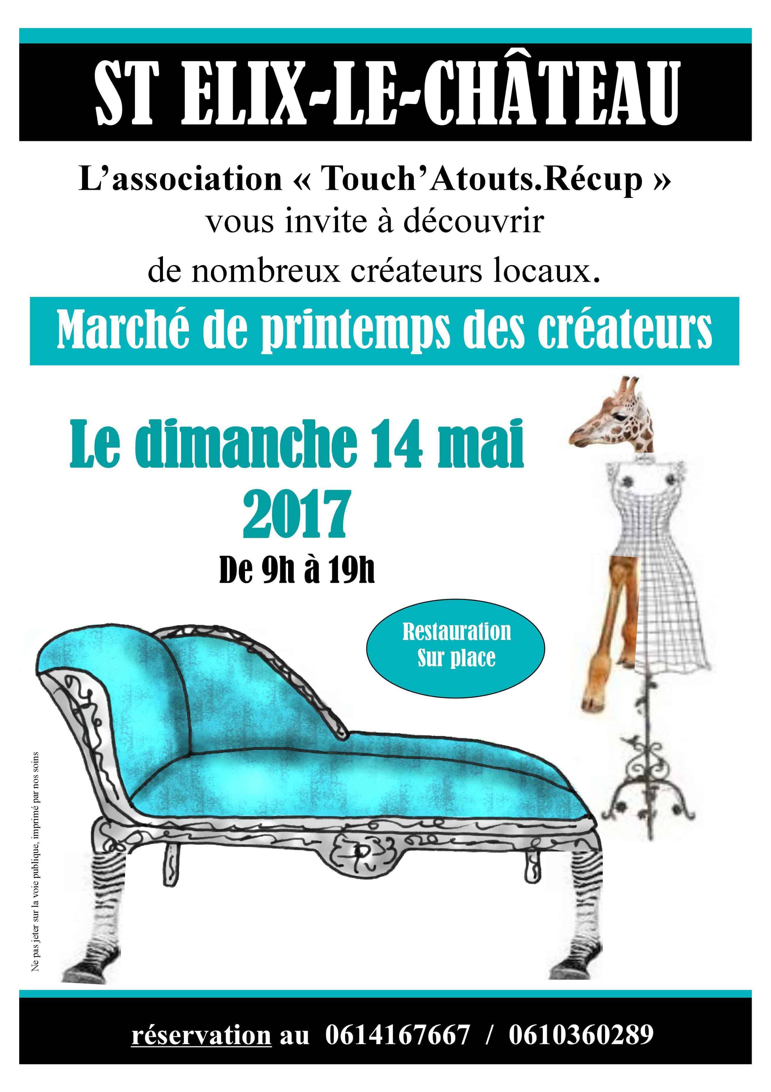 Je serai à l’exposition des créateurs à Saint-Élix-le-Château le 14 mai 2017 dès 9h et toute la journée.
